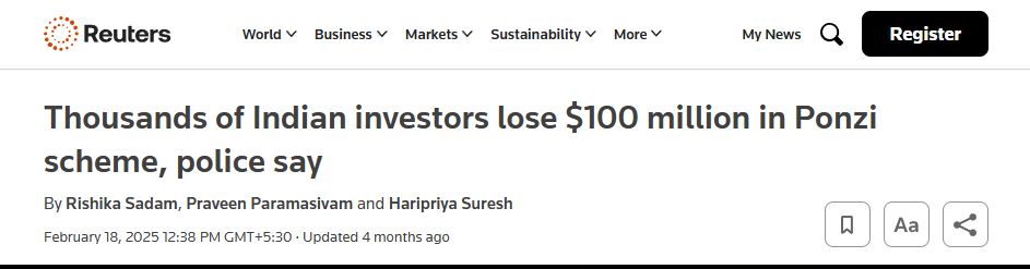 Thousands of Indian investors lose $100 million in Ponzi scheme