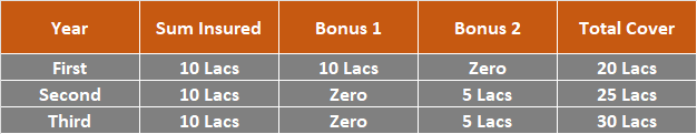 A good plan will have a great bonus structure; for example 50% of base cover as bonus in second and third year even if you make a claim. The bonus shouldn’t have any conditions or linked to CLAIMS.