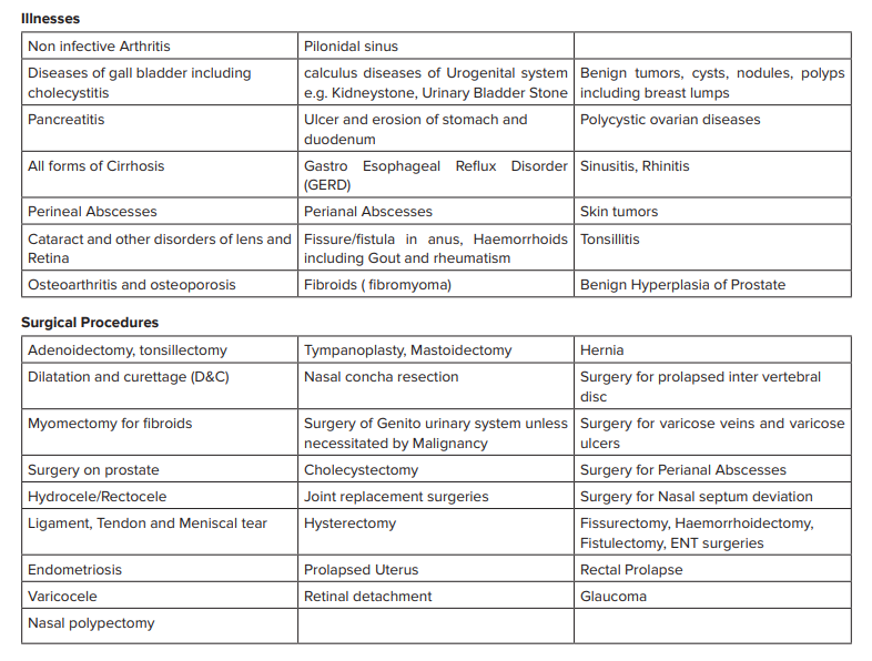 2. Two Year waiting for slow growing illness like cataract, Ulcer etc; See the below snapshot