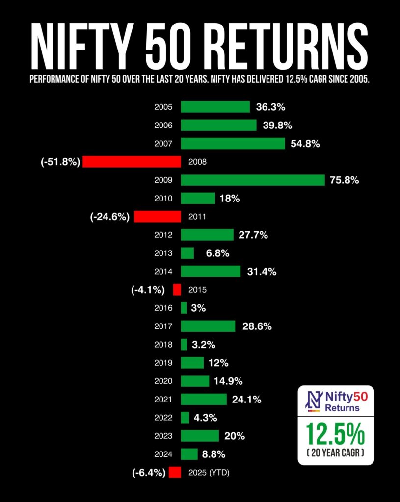 Lets see the returns of Nifty50 Index from 2005 as compared to Fixed Deposits.